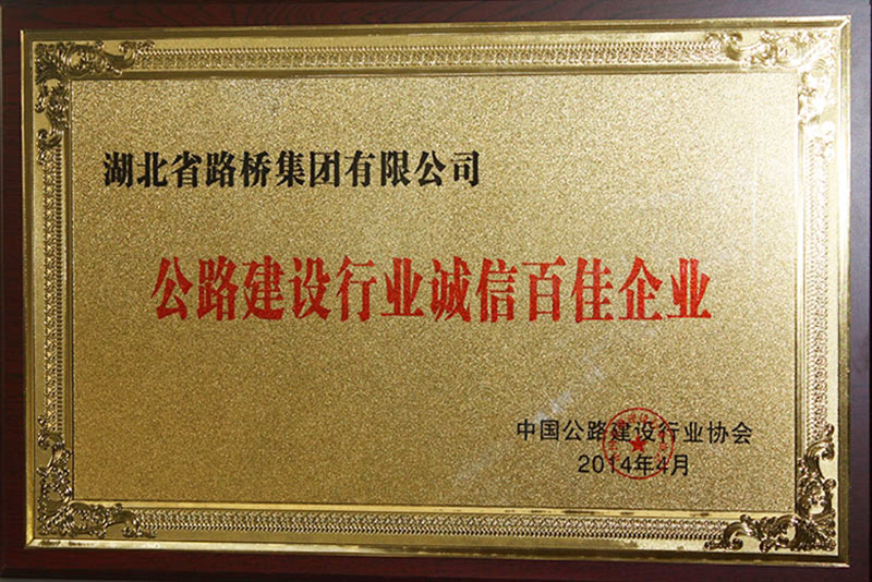 2014年公路建设行业诚信百佳企业